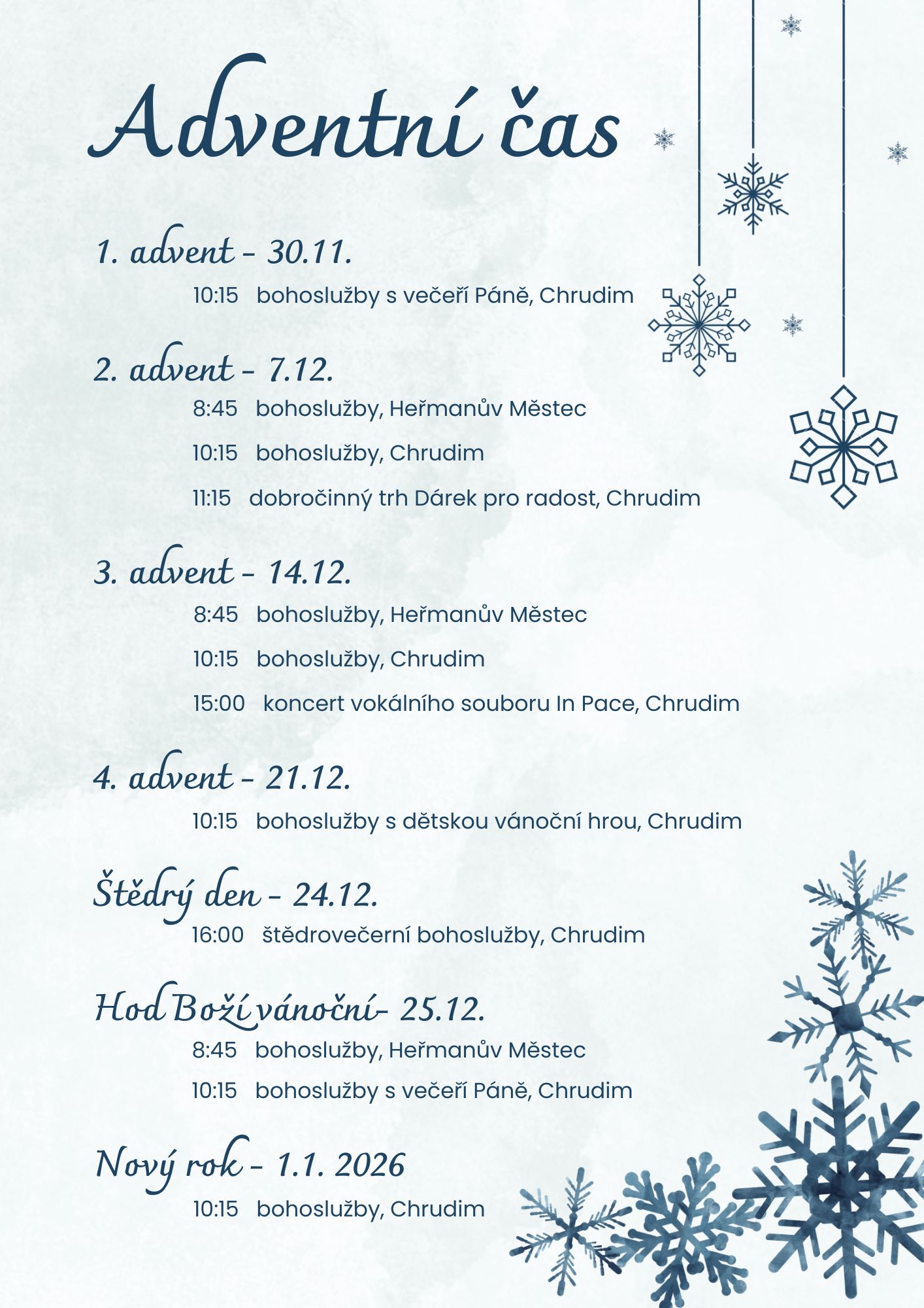 10:15 bohoslužby s večeří Páně, kostel v Chrudimi, káže f. Horáková