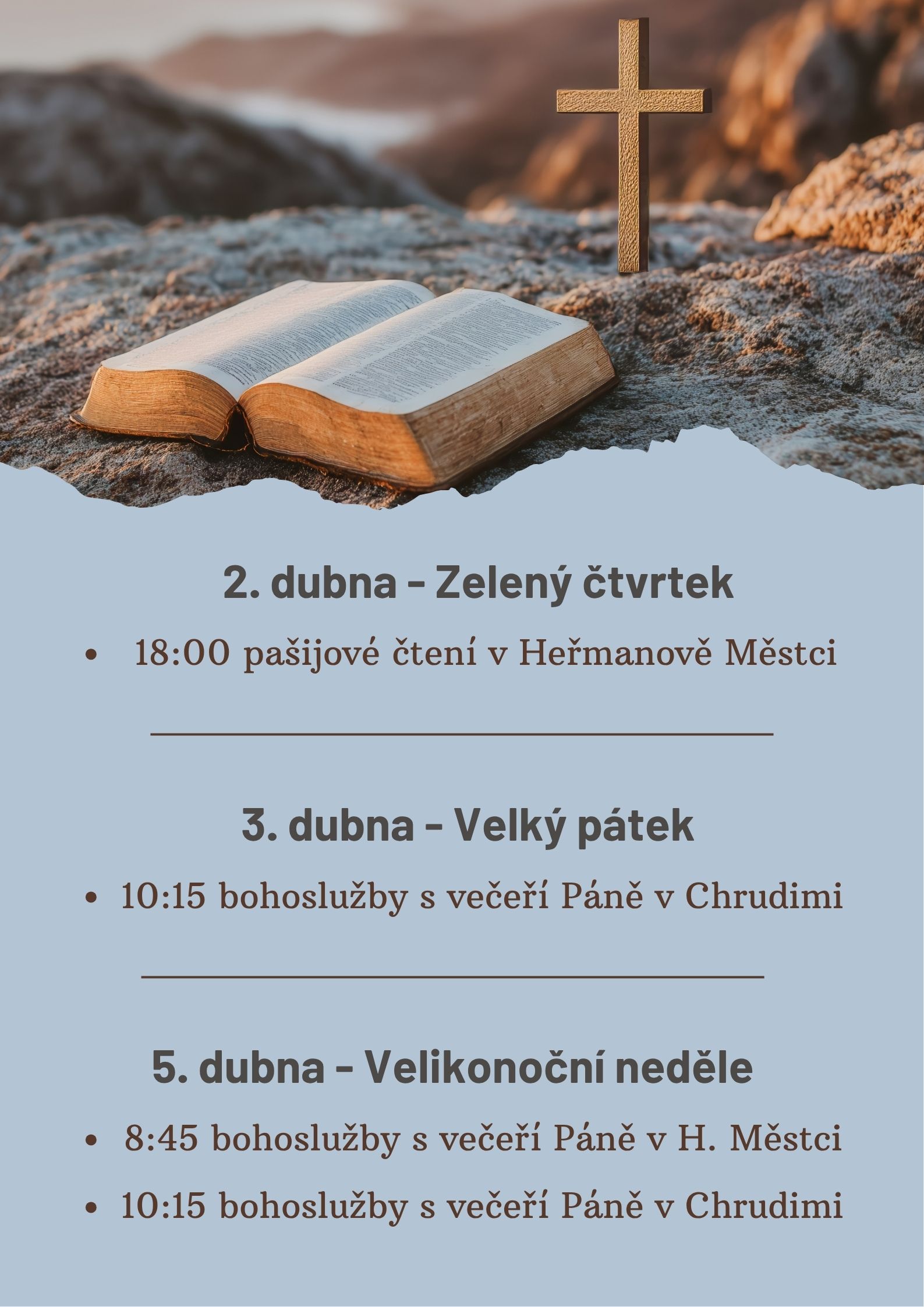 Bohoslužby a sborová setkání v dubnu 2026